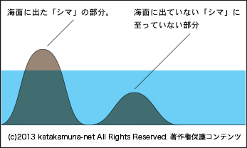 海に浮かぶ島(シマ)の断面を連想してみてください。 海面というスレッショルドレベル(しきい値)の界面を超えるとそれは視界に示されて(観測されて)、「シマ」となります。
